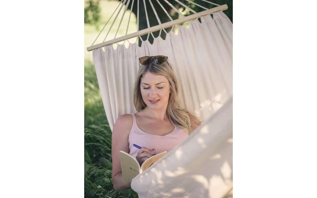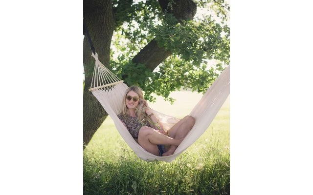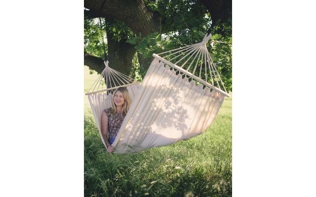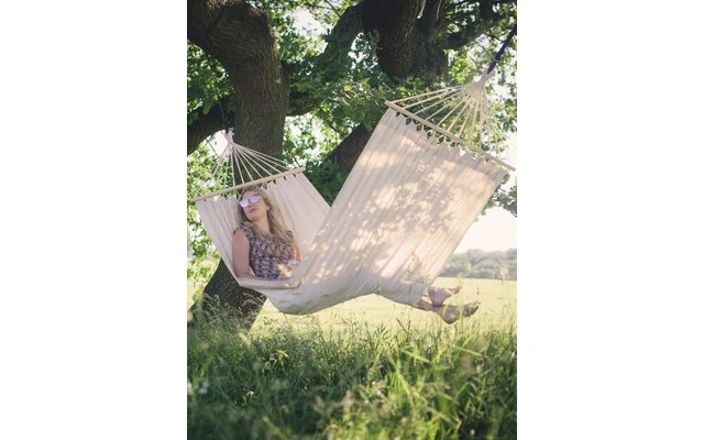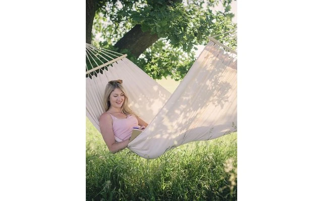 Hamac en matériau EllTex résistant aux intempéries et aux UV, extra durable mais aussi douillet que le coton.