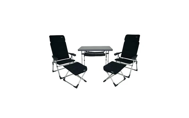 Set composé de 2 chaises AA/213-AECAir-Elite Compact avec tabouret assorti, table AA/246, filet de rangement et sac de transport. Idéal pour 2 personnes. Très compact, facile à transporter. Sac de transport inclus ! Une fois plié, cet ensemble ne mesure que 26 cm de diamètre.